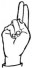 На ћирилици написано КОСТАДИН ГРКИНИЋ састоји се из 15 слова [?]. Исписано ћириличном једноручном азбуком за глувонеме: